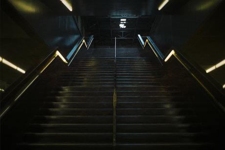 The streets that project the presence of people stained with faint colours between the lights and the darkness.